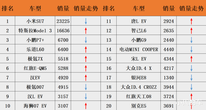 总的来看,与10万级纯电车市场的“百花齐放”所不同,在20万元级别里,消费者的选择更为集中,小米SU7和特斯拉Model 3两款车型销量断层式领先,此外,像小鹏、极氪、比亚迪也有着一定的受众群体,至于其他品牌销量表现一般,这显示出了消费者在预算增加后的谨慎性。所以,看过了这份榜单,想要买车的你大概率应该知道怎么选了吧!